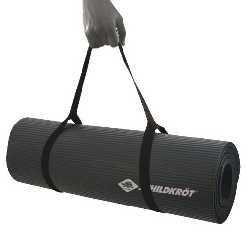 Fitness mat in de kleur grijs. Afmeting 180 bij 60 Dikte 1 cm. Gemakkelijk op te rollen. Wordt geleverd met een draagband.