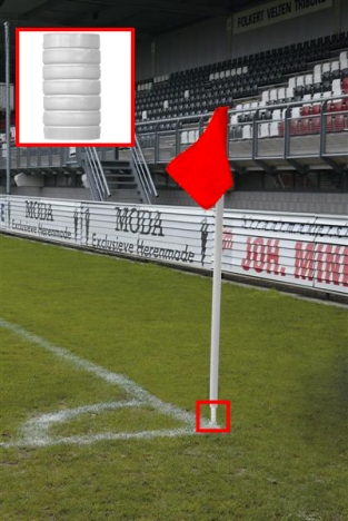 Sportec Heavy Duty hoekvlagstok 50mm wit met veer wordt geleverd inclusief een grondbuis en hoekvlag.