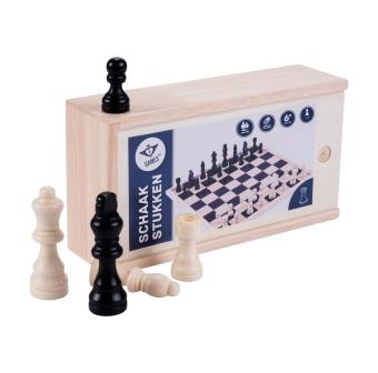 Altijd al willen schaken? Nooit meer rondslingerende schaakstukken met deze basic schaakstukkenset in een handige houten bewaarkistje.